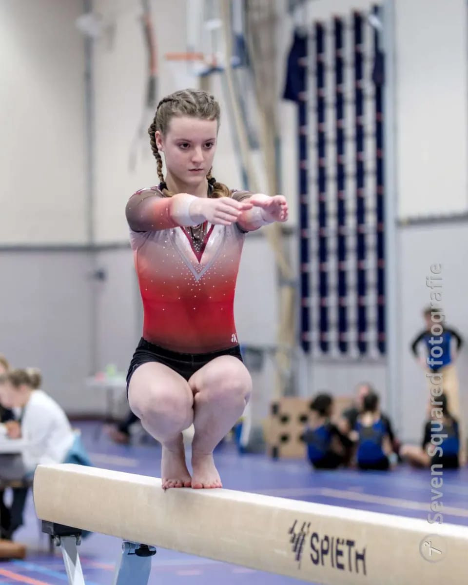Het vierde wedstrijdweekend op rij! Op 30 november 2024 was het de beurt aan Lisa en Fenne. Zij zijn vergeleken met vorig jaar een niveau omhoog gegaan en turnen nu in de Middenbouw 5. Dat zij vooruit zijn gegaan is ook duidelijk te zien in de trainingen. Zij hebben veel vooruitgang geboekt op alle toestellen en dat was ook te zien tijdens de wedstrijd. Deze meiden hebben samen met hun team ook een derde plek weten te behalen, zij hebben allebei een groot aandeel gehad in deze ranking. Noemenswaardig is dat beide meiden individueel ook uitblonken op een paar toestellen. Lisa is tweede op sprong en derde op balk geworden en Fenne eindigde als vierde op brug van alle 20 turnsters in hun wedstrijd.