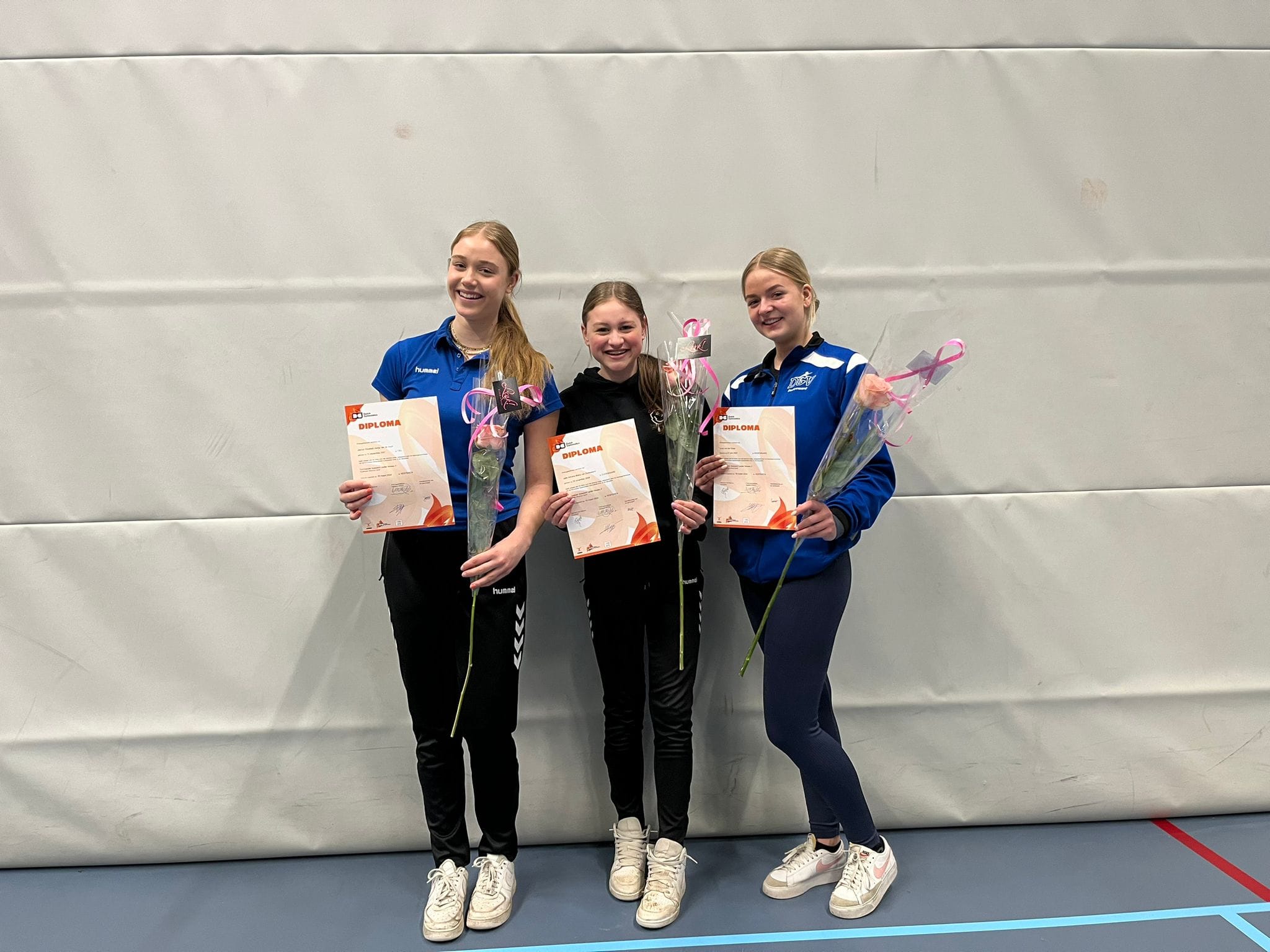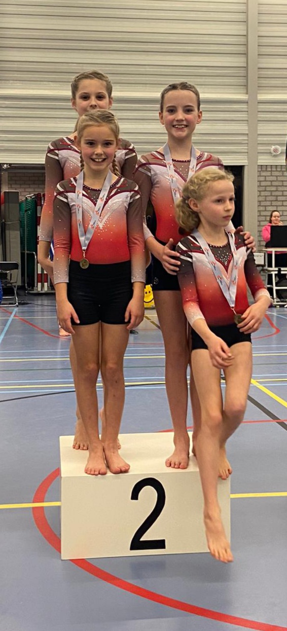 Op 23 november waren Jada en Eline al vroeg in Nijmegen voor hun eerste plaatsingswedstrijd. Zij hebben een hele mooie start van het seizoen gemaakt. Ze komen uit in supplement F en turnden samen in een team met drie turnsters van Gymnastiekvereniging DOS. Ze zijn als team beloond met een hele mooie derde plaats!