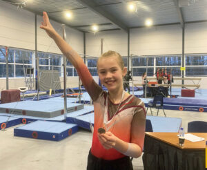 Luna (Jeugd 2) begon haar wedstrijd met wederom een plaatje van een vloeroefening waar ze een mooie 2e plaats mee haalde. Ook met haar balk en brugoefening gingen goed, bij beide haalde ze een plek in de top 5. Aan het eind van de wedstrijd mocht ook Luna het podium op om de bronzen medaille in ontvangst te nemen. Bij de categorie van Luna gingen er maar 4 turnsters door naar de finale. Helaas zat Luna daar, ondanks haar 3e plaats, niet bij.