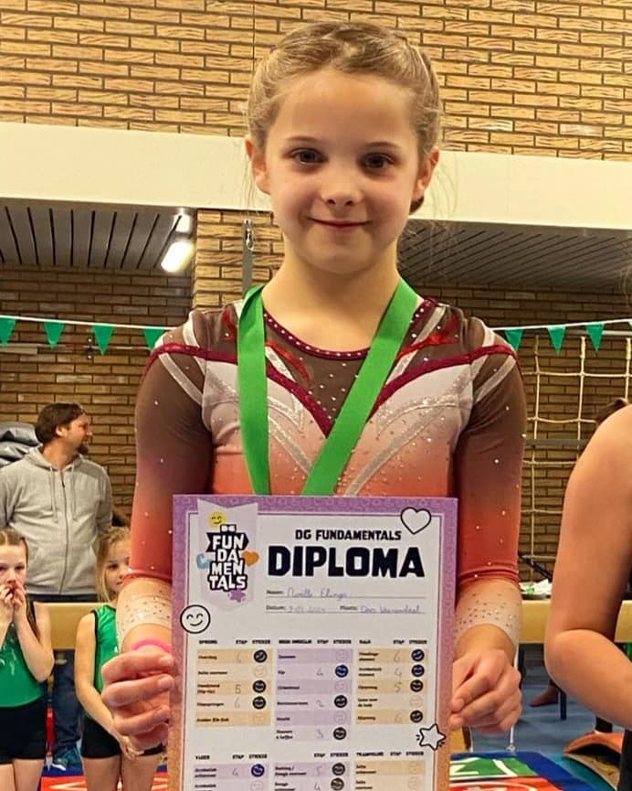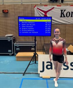 Elisa turnde een erg goede wedstrijd, ze wist van de 35 turnsters op alle toestellen hoog te eindigen met een uitschieter op vloer. Met haar vloeroefening werd ze maar liefst 2e. Na 4 toestellen werd Elisa’s naam genoemd en mocht ze met zilver om haar nek het podium op.