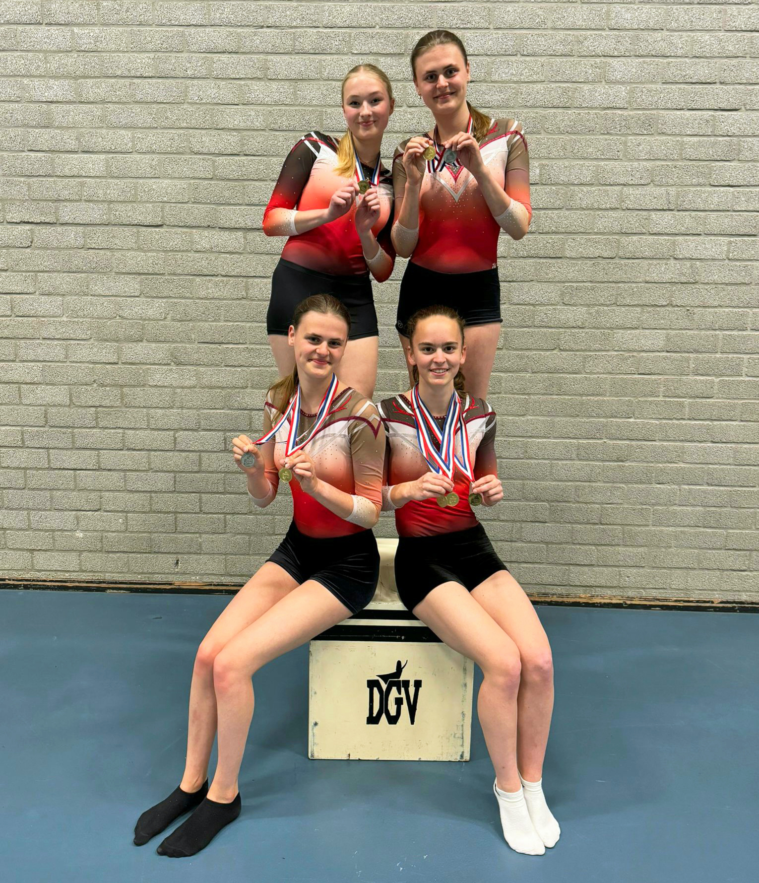Alle vier eindigden deze wedstijd in de middenmoot. Alyssa wist met haar vloeroefening een mooie 3e plaats te behalen! Het wedstrijdseizoen zit er nu op voor deze vier meiden, zij kunnen nu lekker verder oefenen voor de DGV uitvoering in juni.