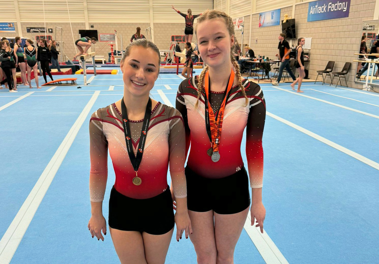 Deze goede oefeningen zorgden ervoor dat ze allebei het podium op mochten. Imara won goud, Tirza ging met brons naar huis. Het kwam nooit eerder voor dat ze allebei tegelijk op het podium stonden.