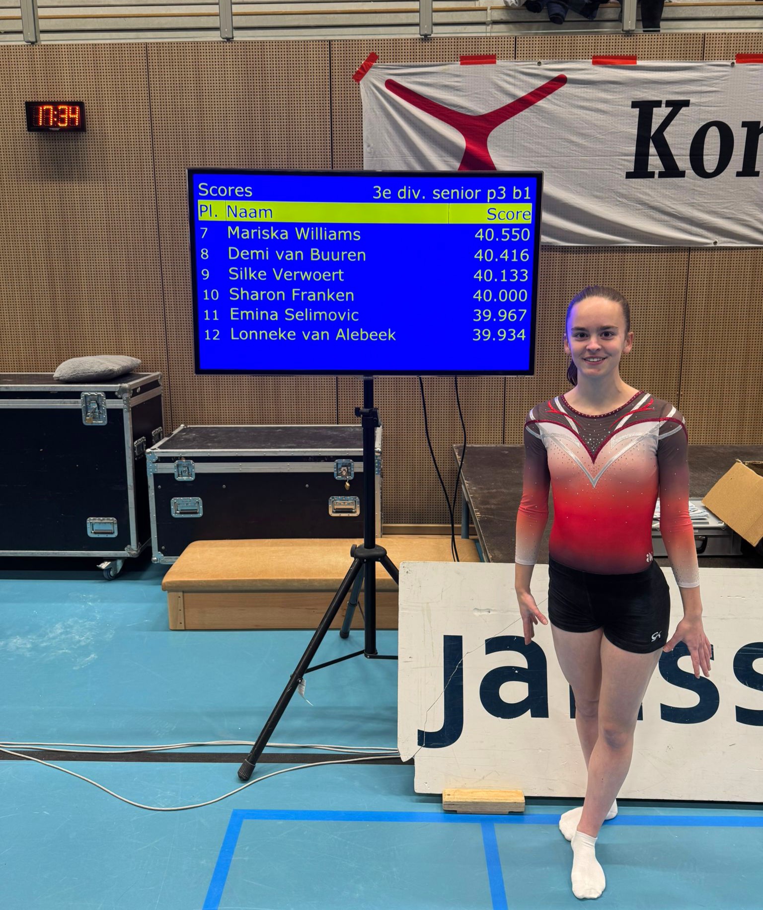 Ilse (Jeugd 1) heeft de afgelopen weken niet optimaal kunnen trainen in verband met een knieblessure. Toch stond ze wel op de wedstrijdvloer. Vooral op sprong eindigde ze hoog met een 2e plaats. Ilse eindigde haar wedstrijd op een 11e plaats.