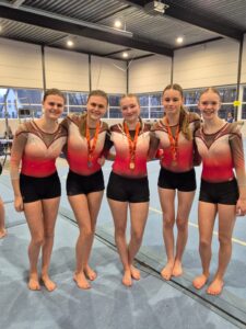 Elisa turnde een nette wedstrijd, maar liet door een val van de balk en door het wisselen van elementen op de vloer wat punten liggen. Toch werd ze keurig 8e. Dewi turnde ondanks wat onzekerheid een stabiele wedstrijd, bleef keurig op de balk staan en eindigde op een mooie 7e plaats. Ook Jade turnde ondanks wat meer zenuwen dan anders een mooie wedstrijd. Balk was haar beste toestel wat haar een tweede plaats opleverde. Aan het einde van de wedstrijd mocht Jade met een bronzen medaille naar huis.