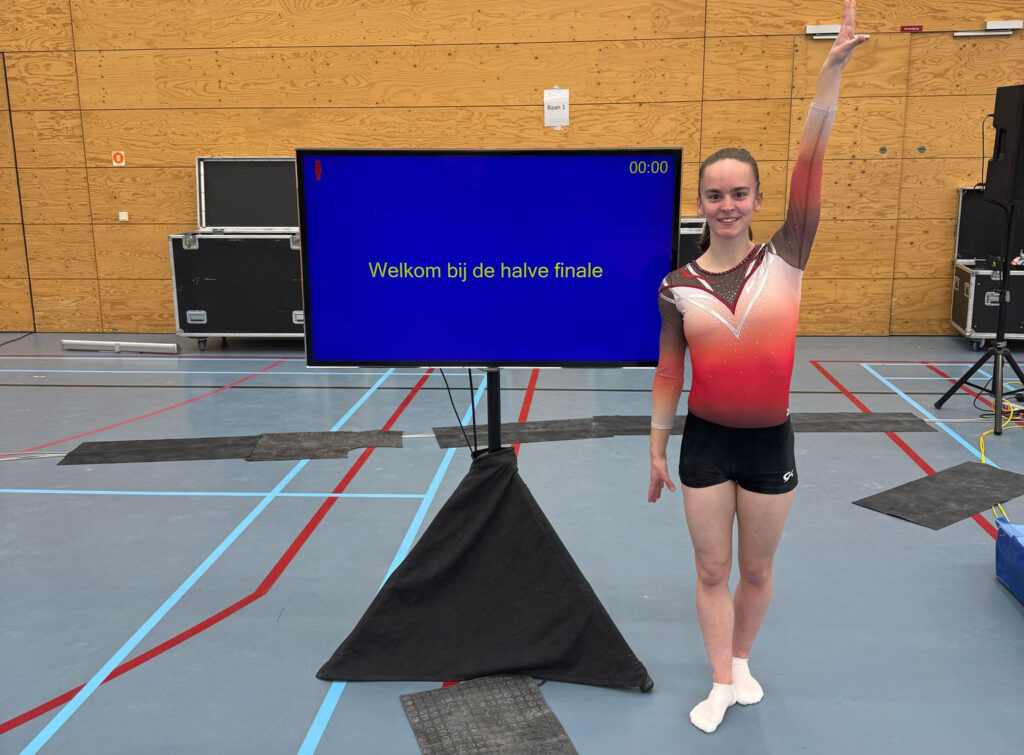 In de ochtend turnde Eline Leeuw (Senior F) twee toestelfinales. Ze liet eerst een mooie brugoefening zien en eindigde daarmee net niet op het podium. Dat gebeurde wel na haar goede vloeroefening, want hiermee won zij de bronzen medaille!
